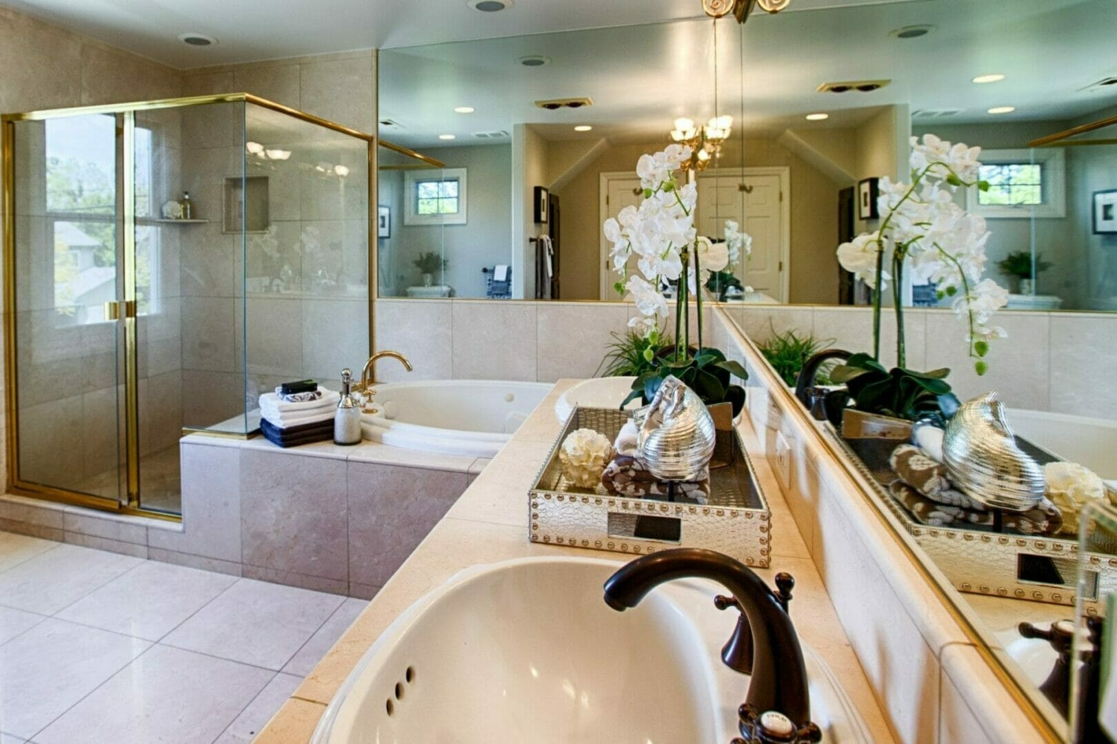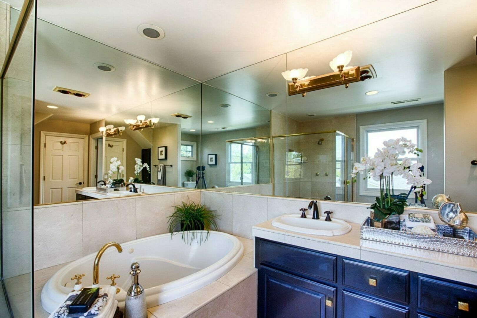 - Master bath with double sinks, large tub, separate shower