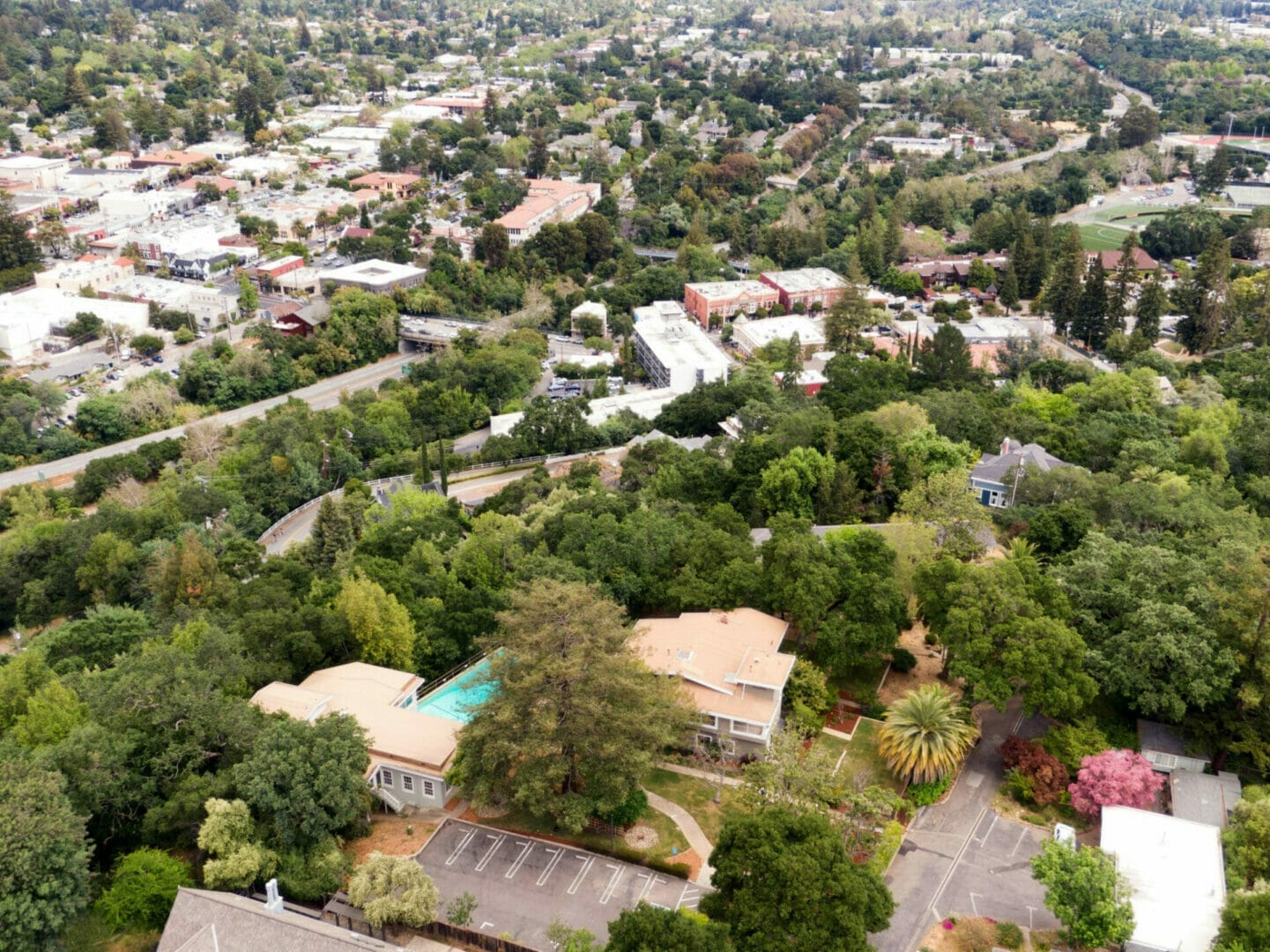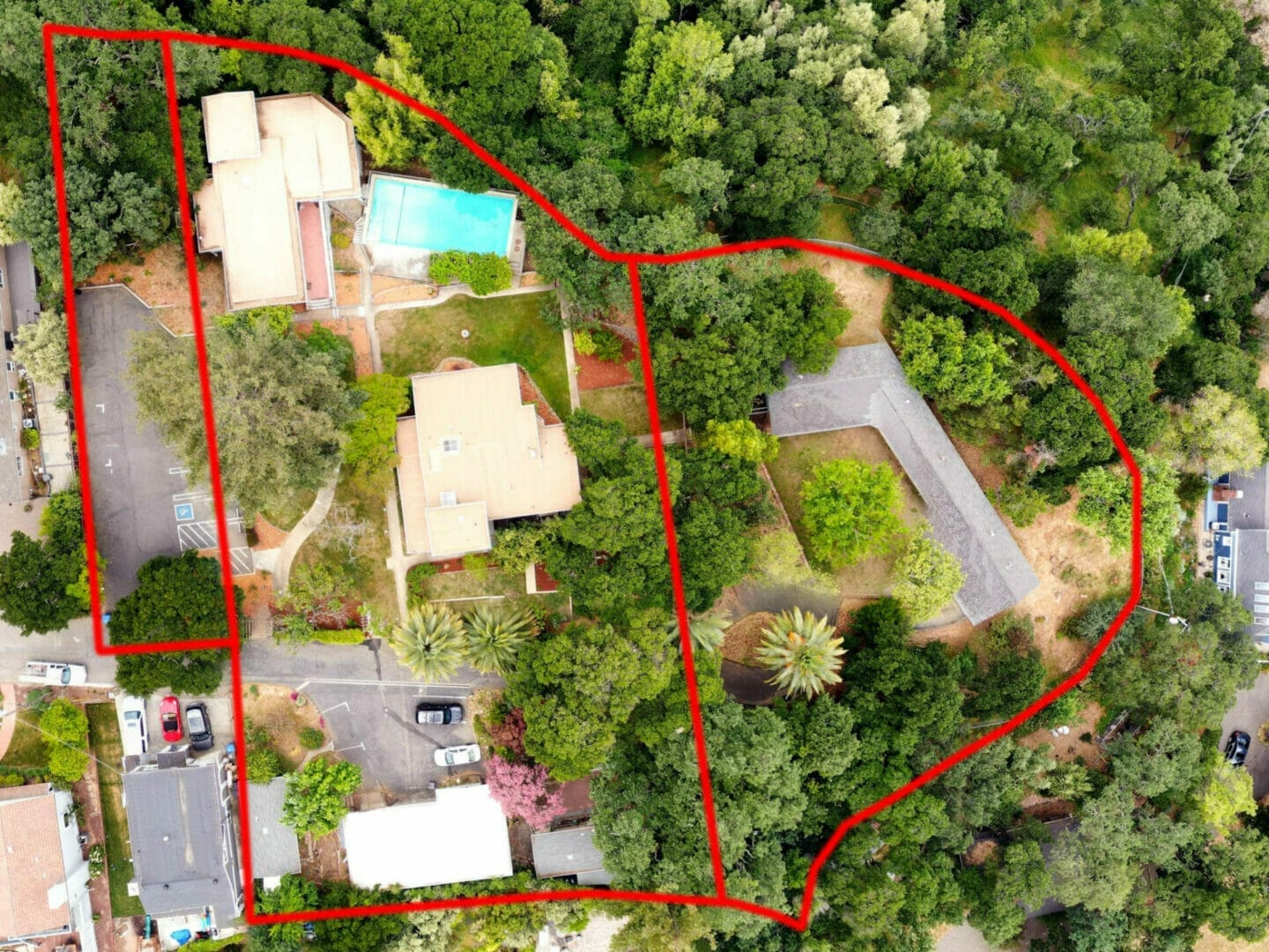 Stunning property situated at the end of cul de sac in an exclusive neighborhood of beautiful estate homes.  Extremely rare opportunity to own 1.56+/- acres in the heart of downtown Los Gatos.  Property is comprised of three separate parcels providing the opportunity to develop property into a single estate or possibly develop each of the 3 parcels individually.  Property is secluded and very private. Previously a retirement and retreat center for the Sisters of the Holy Name of Jesus and Mary.  The property consists of a main house of 3700+/- square feet, a guest house of 2127 +/- square feet,  a 2232+/- square foot, nine bedroom dormitory and four additional auxiliary living units.