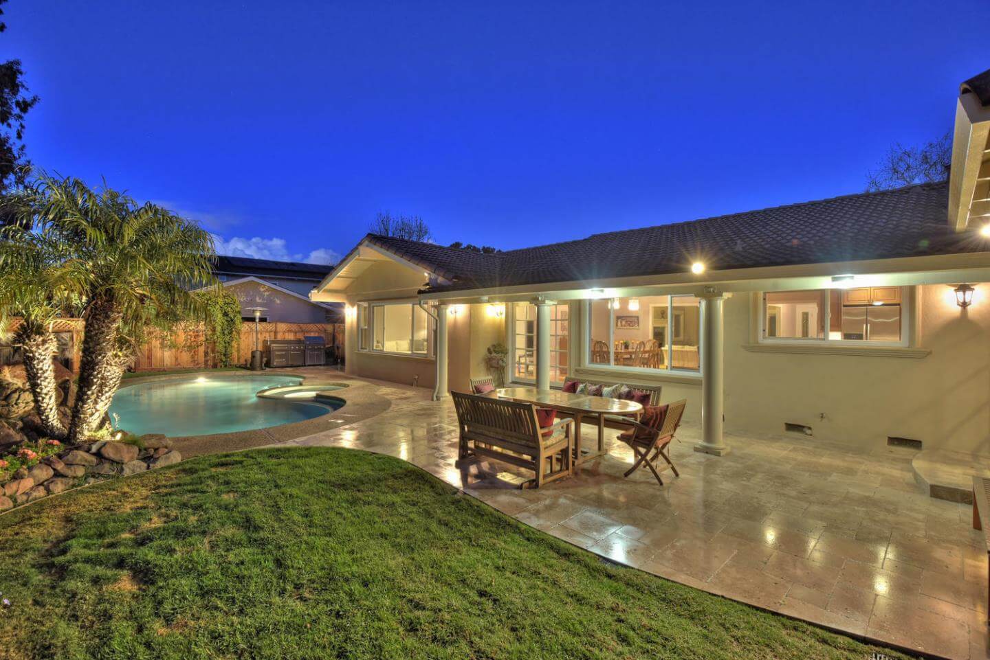Gorgeous single level totally updated home located on a peaceful, private cul -de-sac. Open floor plan flows smoothly from living room to dining and kitchen. Majestic sunrise view from living room. Completely remodeled Kitchen with high quality cabinets, granite countertop, large island, wine cooler. Expansive built-in office with cherry wood cabinetry overlooking Los Gatos Mountains, with built in queen Murphy bed. Master retreat with French door to beautiful backyard, large master shower with 2 shower heads. Fully remodeled bathrooms with Jaquzi tub in the hall bath. Hunter Douglas window coverings. Nest temperature control system, alarm system. Newer stucco.Fresh paint in and out .Hardwood floor throughout, New heating, air condition & water heater. Newer tile roof. Green house and separate custom built insulated storage. New cabinetry in the garage. Private backyard with sparkling pool, spa and waterfall with fruit trees, expansive travertine patio perfect for intimate gatherings