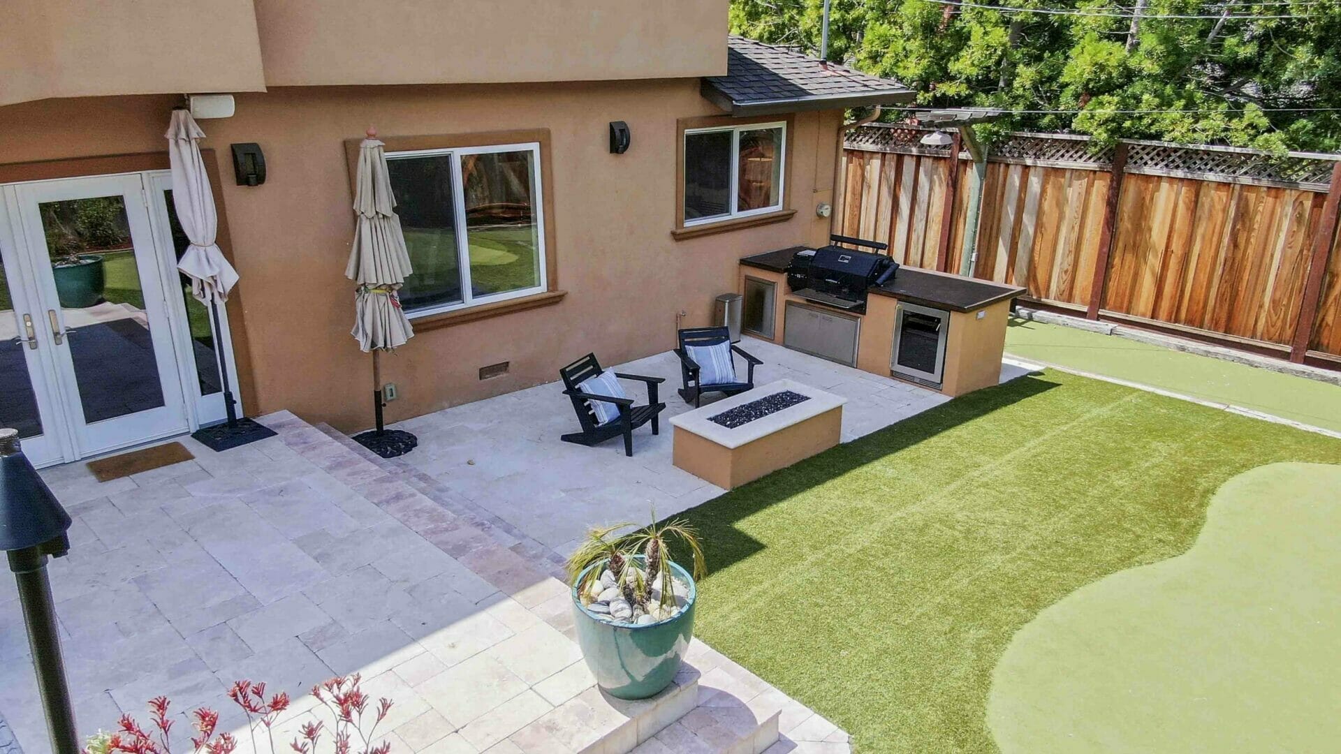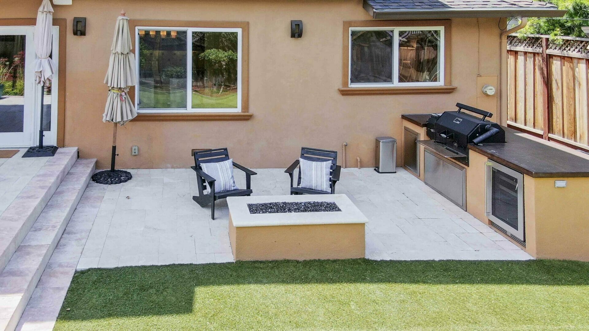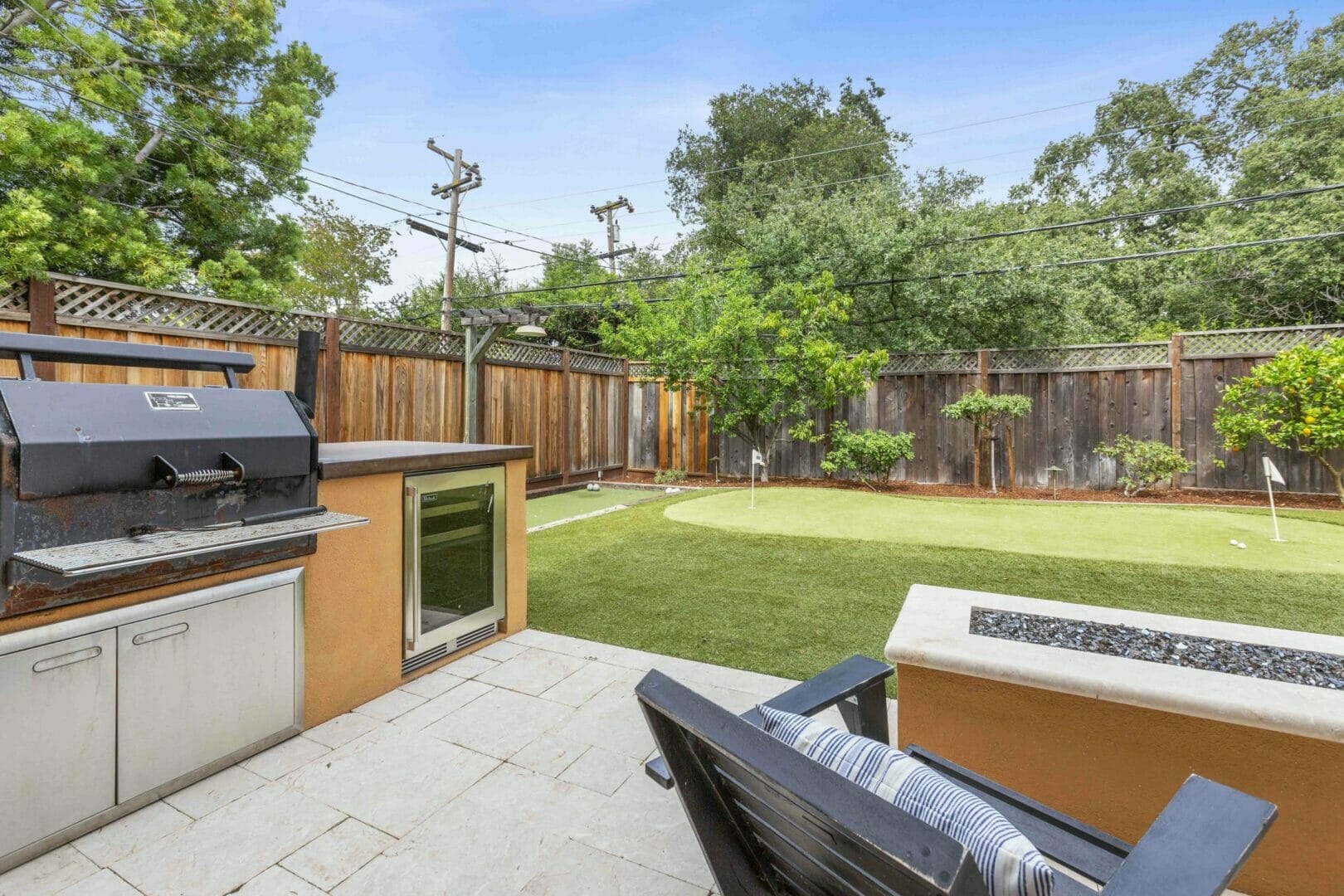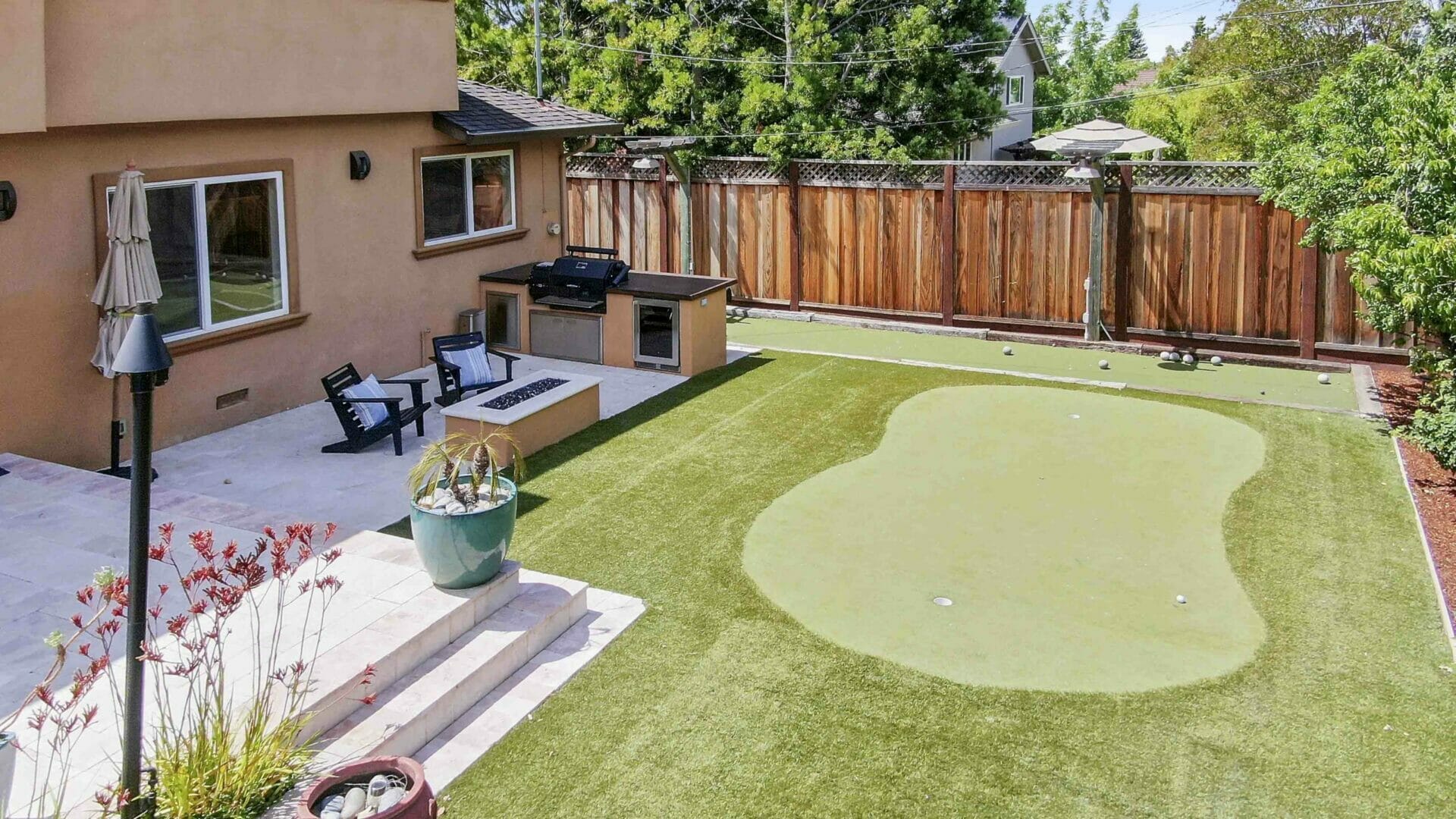 Get a jump on summer entertaining with this fabulous 2529+/- s.f, 4 bedroom, 4 bathroom home! Custom designed for indoor and outdoor fun, the home features a gourmet kitchen with granite slab countertops, stainless steel appliances, an island, a pantry and a breakfast bar. The kitchen flows into a family gathering and dining area with a bar and wine refrigerator that opens into the back yard patio. The upstairs primary suite is designed as your private retreat. With two walk-in closets, and a bathroom featuring an oversized shower, a large spa tub, and double sinks, this suite is your salvation after a long day! Additionally the 2nd bedroom upstairs is currently set up as an at home office suite creating a private setting for work and relaxation. The main floor has two large bedrooms (one ensuite) and a large family room that could also become an in-laws quarters for extended family living.  Enjoy a game of bocce ball on the lighted bocce ball court, or practice your putting on the backyard putting green! You can also simply relax to the tranquil sound of two fountains while cooking on the built-in barbecue/smoker or enjoy gathering with friends and family around one of the two gas fire pits! Don’t forget the two car garage with storage, the indoor laundry room and the formal living room that complete this fabulous home! Situated in a desirable neighborhood that is close to schools, parks, and shops this is a rare opportunity to become the new owner of a very special home!