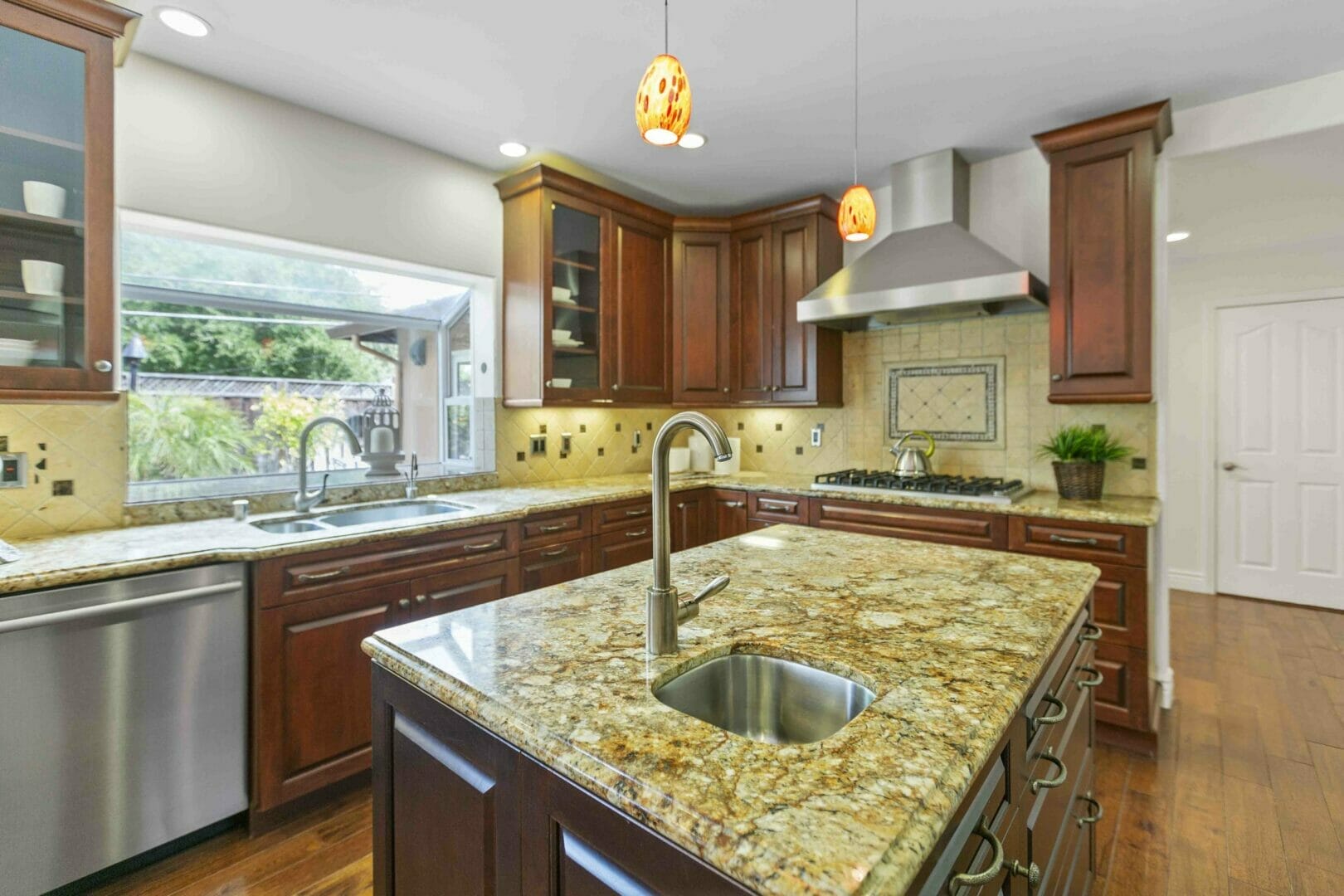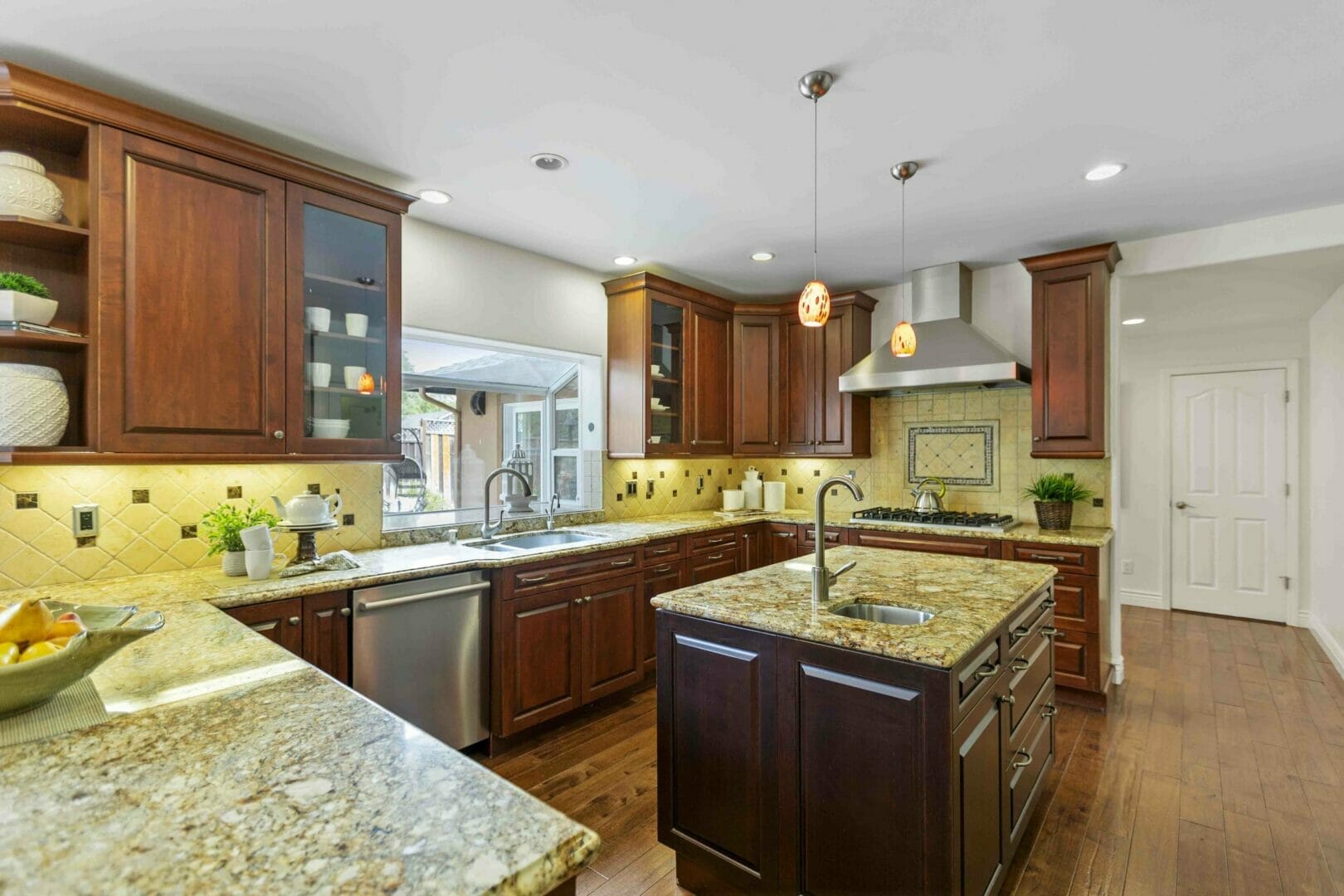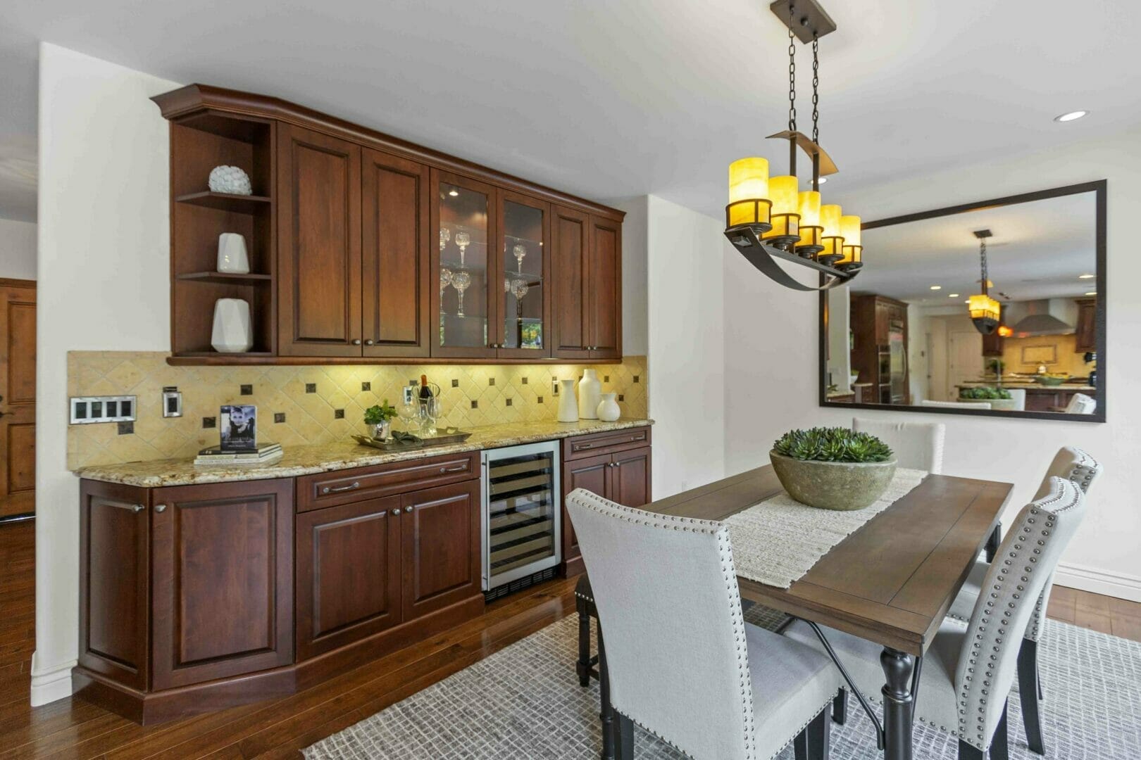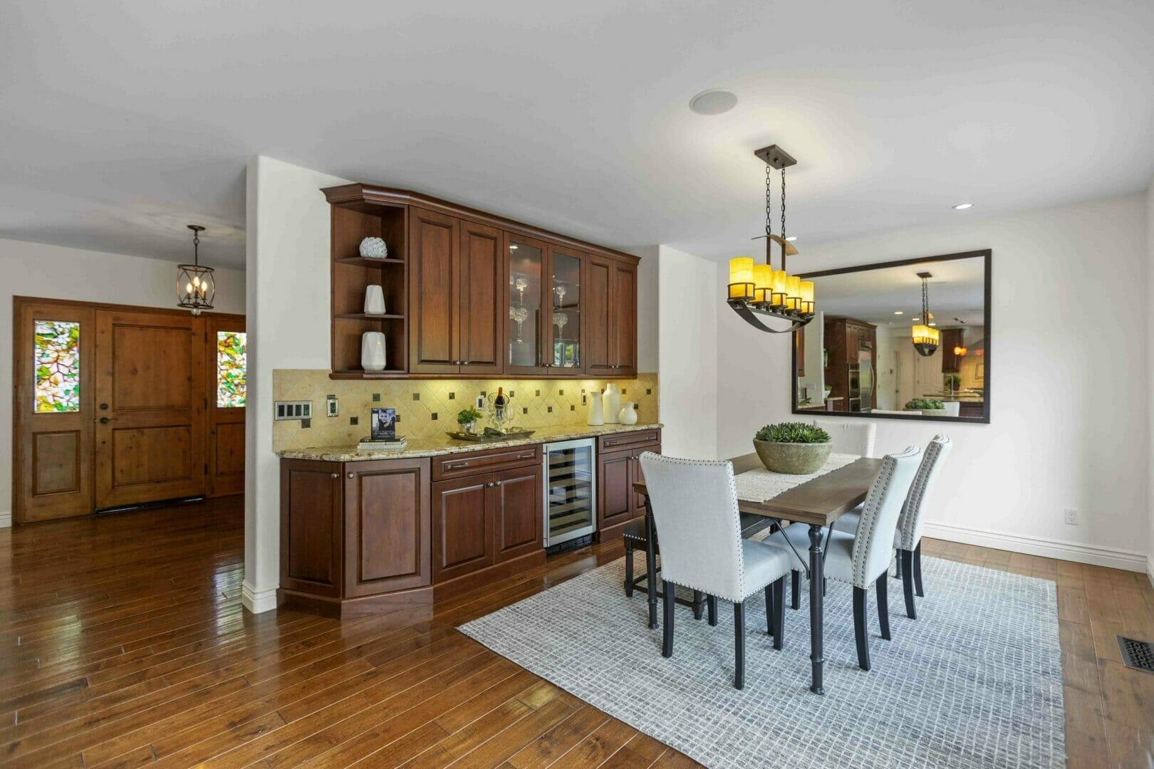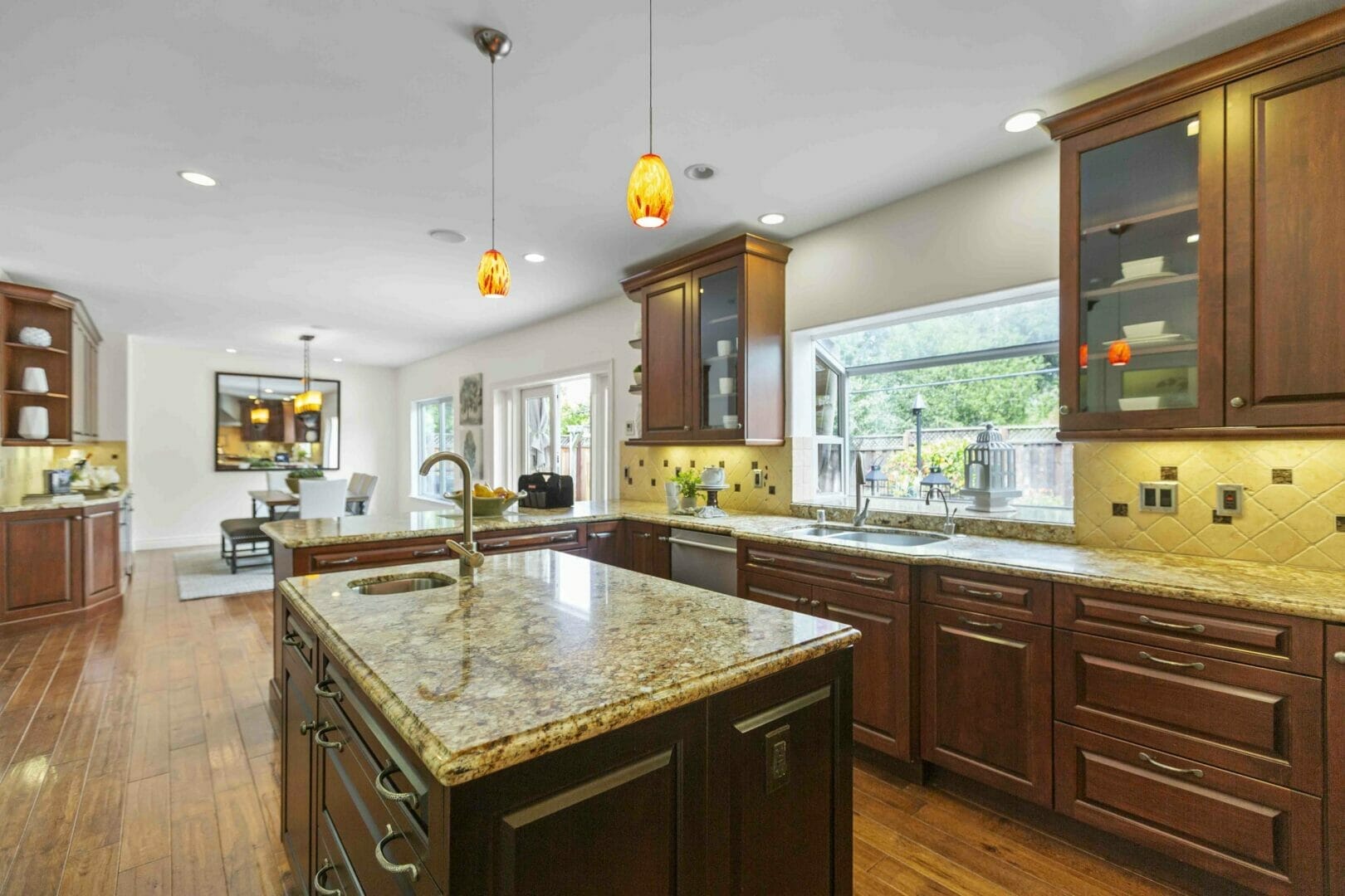 Get a jump on summer entertaining with this fabulous 2529+/- s.f, 4 bedroom, 4 bathroom home! Custom designed for indoor and outdoor fun, the home features a gourmet kitchen with granite slab countertops, stainless steel appliances, an island, a pantry and a breakfast bar. The kitchen flows into a family gathering and dining area with a bar and wine refrigerator that opens into the back yard patio. The upstairs primary suite is designed as your private retreat. With two walk-in closets, and a bathroom featuring an oversized shower, a large spa tub, and double sinks, this suite is your salvation after a long day! Additionally the 2nd bedroom upstairs is currently set up as an at home office suite creating a private setting for work and relaxation. The main floor has two large bedrooms (one ensuite) and a large family room that could also become an in-laws quarters for extended family living.  Enjoy a game of bocce ball on the lighted bocce ball court, or practice your putting on the backyard putting green! You can also simply relax to the tranquil sound of two fountains while cooking on the built-in barbecue/smoker or enjoy gathering with friends and family around one of the two gas fire pits! Don’t forget the two car garage with storage, the indoor laundry room and the formal living room that complete this fabulous home! Situated in a desirable neighborhood that is close to schools, parks, and shops this is a rare opportunity to become the new owner of a very special home!