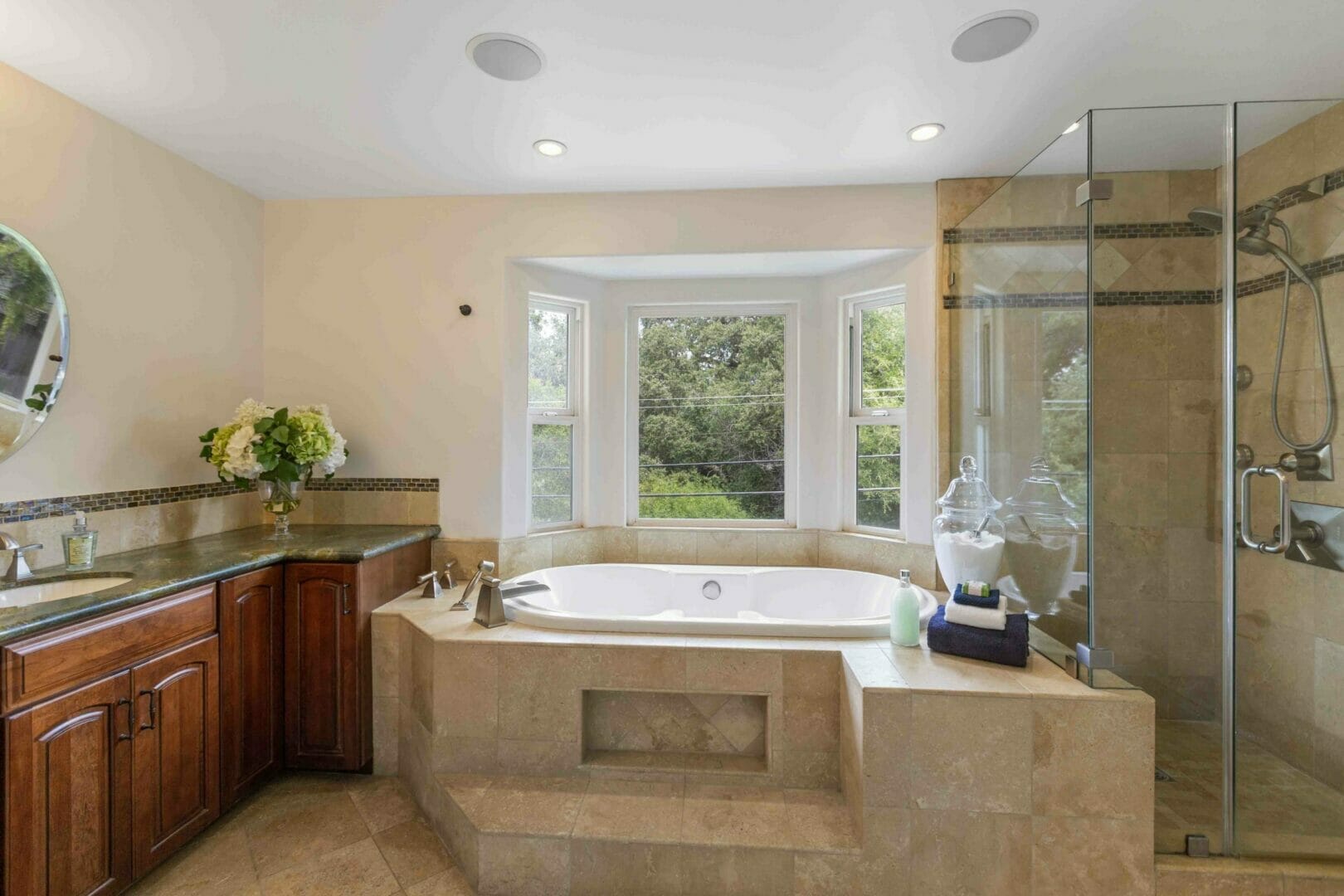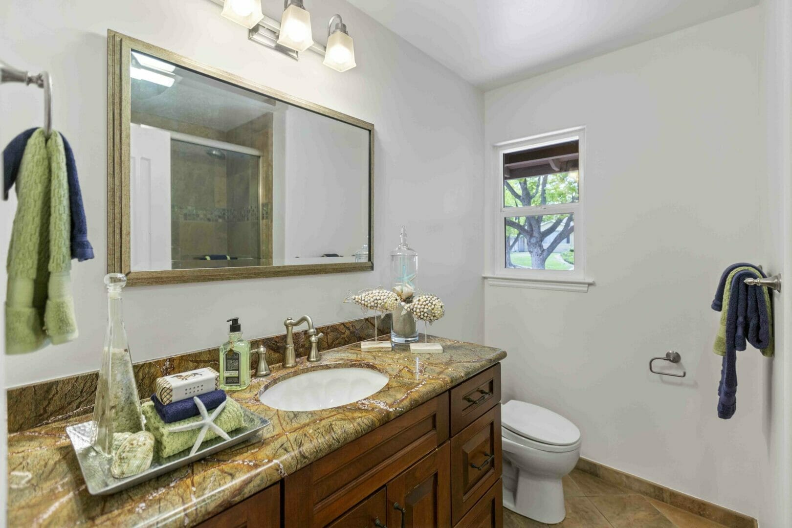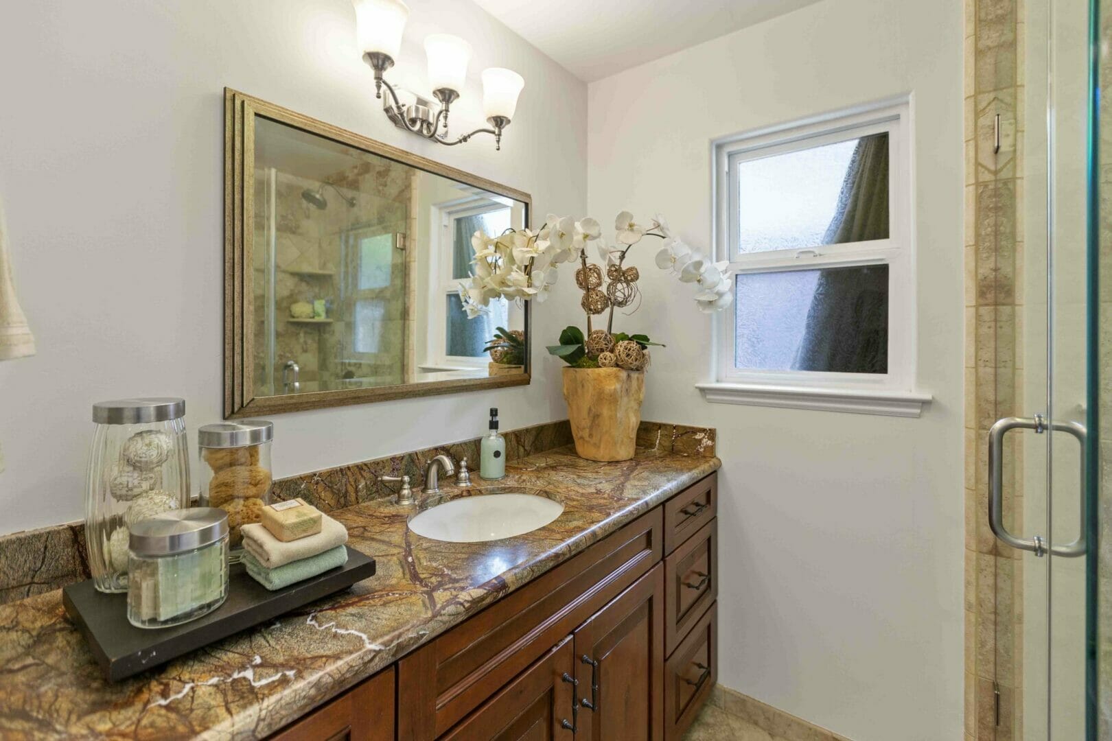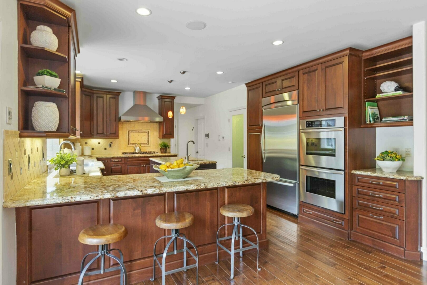 Get a jump on summer entertaining with this fabulous 2529+/- s.f, 4 bedroom, 4 bathroom home! Custom designed for indoor and outdoor fun, the home features a gourmet kitchen with granite slab countertops, stainless steel appliances, an island, a pantry and a breakfast bar. The kitchen flows into a family gathering and dining area with a bar and wine refrigerator that opens into the back yard patio. The upstairs primary suite is designed as your private retreat. With two walk-in closets, and a bathroom featuring an oversized shower, a large spa tub, and double sinks, this suite is your salvation after a long day! Additionally the 2nd bedroom upstairs is currently set up as an at home office suite creating a private setting for work and relaxation. The main floor has two large bedrooms (one ensuite) and a large family room that could also become an in-laws quarters for extended family living.  Enjoy a game of bocce ball on the lighted bocce ball court, or practice your putting on the backyard putting green! You can also simply relax to the tranquil sound of two fountains while cooking on the built-in barbecue/smoker or enjoy gathering with friends and family around one of the two gas fire pits! Don’t forget the two car garage with storage, the indoor laundry room and the formal living room that complete this fabulous home! Situated in a desirable neighborhood that is close to schools, parks, and shops this is a rare opportunity to become the new owner of a very special home!