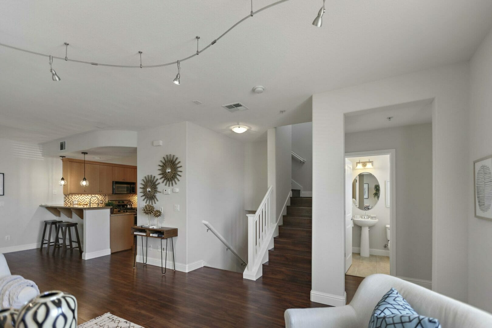 Spectacular end unit townhome style condo built in 2005. Formal entry downstairs. Amazing open floor plan is spacious, light and bright with lots of dual pane windows and a large balcony. The contemporary kitchen has loads of storage, granite countertops w/ custom tile backsplash, stainless steel appliances, a breakfast bar and a walk in pantry. There are two cozy bedrooms upstairs both with en suite baths and brand new carpet. The primary bedroom has double sinks, a large walk-in closet and a private balcony. This home enjoys central heat and air conditioning. The unit offers beautiful laminate floors and new carpet. We’ve just painted the entire unit so it looks fresh and new. There is an attached tandem 2 car garage on the ground level. Property is located steps away from Raymond Bernal Jr. Memorial Park and walking distance to Japantown. Perfect commuting location. Close to Hwys 880, 101 and 87. Close to future Google Village and all of downtown San Jose.